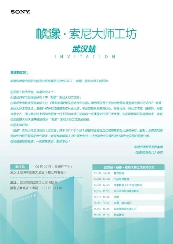 6月9日下午,一起聚焦索尼大师工坊(武汉)!我们诚邀您的光临!